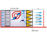 efficiency of HEPA filters is 99.999% of all particles larger then 0.3